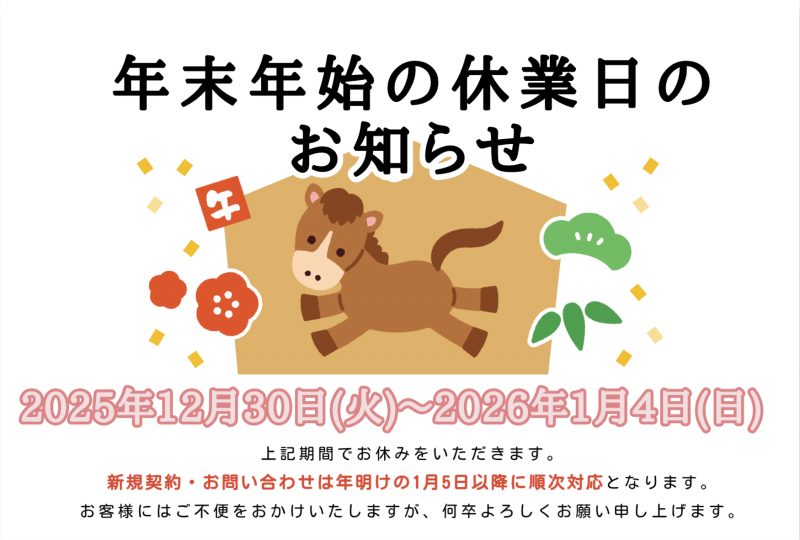 年末年始休業のお知らせ【2025年12月30日~2026年1月4日】